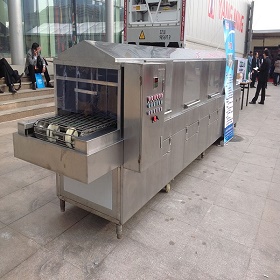 洗筐機(jī)是重要的周轉(zhuǎn)筐清洗設(shè)備,該機(jī)開啟后,由人工送料至噴淋清洗機(jī)鏈條軌道或由輸送連接自動進(jìn)料,先進(jìn)行堿液噴淋,然后熱水噴淋,再進(jìn)行清水循環(huán)噴淋,消毒水噴淋。四組各自獨立,外置循環(huán)水箱,過濾網(wǎng)可方便抽取。周轉(zhuǎn)箱沖洗進(jìn)出口由人工操作 。下面我們簡單介紹一下洗筐機(jī)的產(chǎn)品性能: